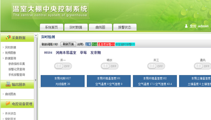 本系統(tǒng)采用RFID及物聯(lián)網(wǎng)技術建立核心體系架構(gòu),并以公共云計算模式為用戶提供大棚種植業(yè)務的全面信息服務及決策服務。實現(xiàn)全面監(jiān)測、智能分析、科學指導一體化的大棚應用服務平臺。項目通過實時采集并檢測溫室內(nèi)的各項參數(shù)指標,從而實現(xiàn)智能化控制溫室內(nèi)各電控設備的開關;同時通過設置安全閾值,實現(xiàn)了超出閾值的警報的功能。