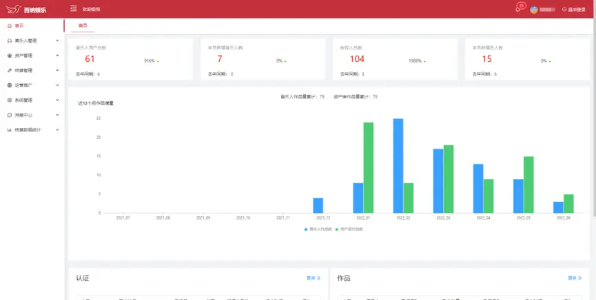 音樂人管理:注冊認證、認證審核、作品上傳、作品審核、授權簽約、藝人結算